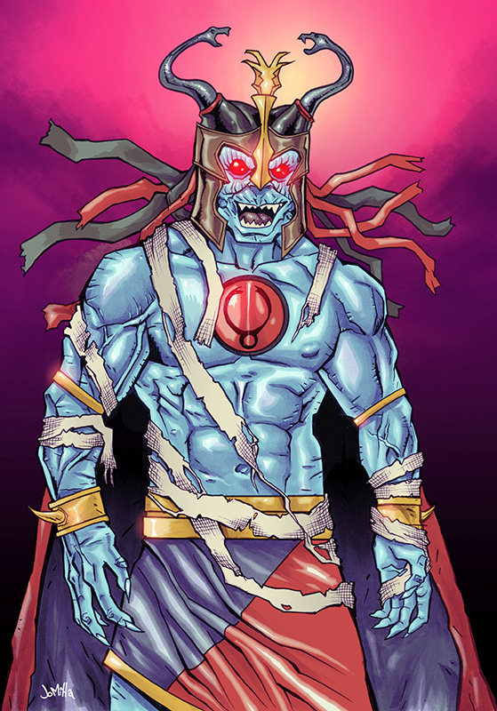 The nostalgia train rolls on, as I draw some of my favorite characters from childhood. He-Man and Orko, Storm Shadow and Snake Eyes, and now the villain of the Thundercats cartoon- Mumm-Ra! Pen and ink, toned with Copic markers and colored in Photoshop.